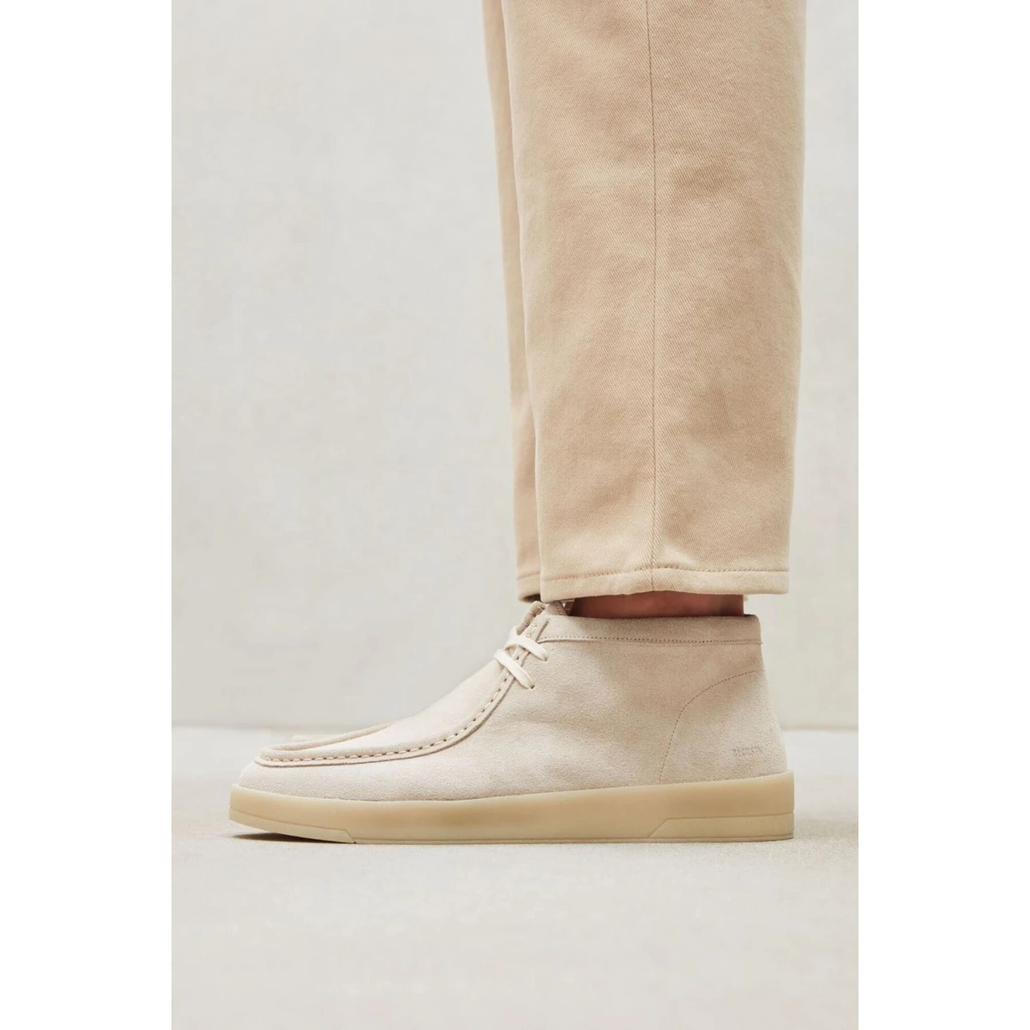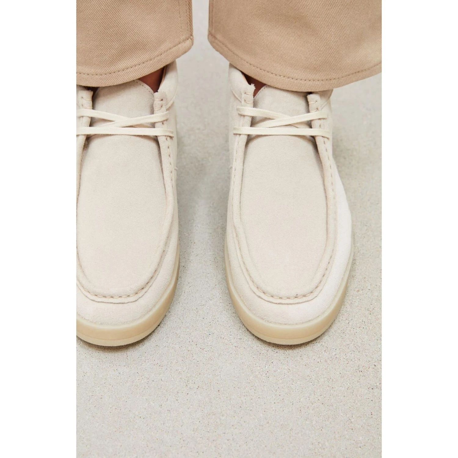 Le Bruce est un mocassin mi-haut, en daim et muni de lacets.