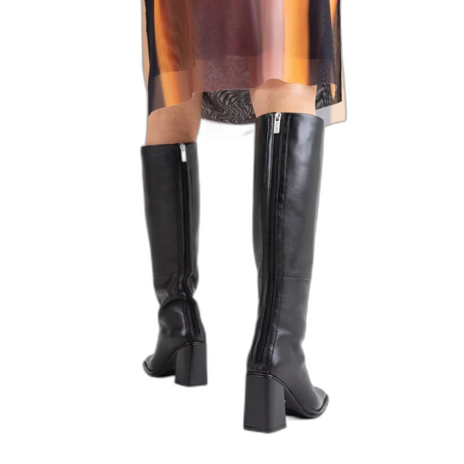 Faites-vous plaisir avec ces bottes funky ! Cette botte haute apporte définitivement du fun dans votre vie ! La botte a un talon en V de 7 cm, est noire et possède une fermeture éclair à l’arrière. Soyez folle!DurabilitéUne chaussure se compose de trois parties, à savoir : le dessus, la doublure et la semelle. Lorsque l’une de ces parties est durable à 50 % ou plus, la chaussure reçoit notre label « plus durable ». Cette chaussure obtient le label plus durable grâce à l’utilisation d’un cuir de mouton plus durable (certifié par le Leather Working Group). Découvrez ici notre feuille de route vers une empreinte zéro.