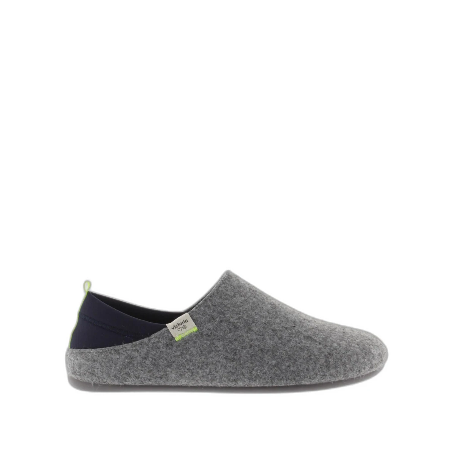 Nouvelles pantoufles Victoria. Fabriquées en Espagne à partir de feutre recyclé avec arrière en néoprène et scratch contrastant.Très originales, elles peuvent être chaussées ou portées sans talon grâce à leur partie arrière en néoprène.