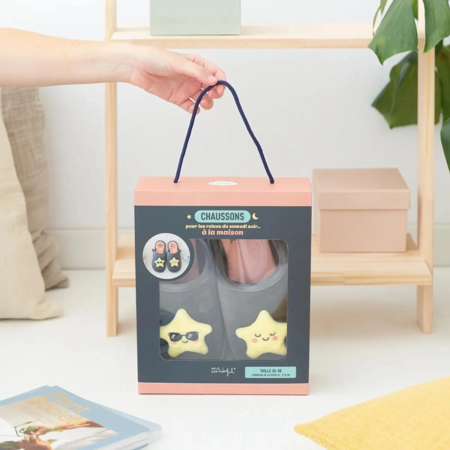 Tout donner sur l’estrade de ton bar préféré, c’est du travail. Et non, nous ne sommes pas en train de parler de choisir un look, de se coiffer d’une façon précise ou de préparer une chorégraphie… nous faisons allusion à la super sieste juste avant pour recharger les batteries. Et, évidemment, au twerking (sans musique) du lendemain. Les deux sont essentiels pour briller lors d’une bonne escapade nocturne et pour récupérer après, comme si rien ne s’était passé. Et, en parlant de récupérer, il ne nous vient pas à l’esprit de meilleur allié de que ces chaussons Mr. Wonderful : ils sont si confortables qu’ils deviendront vite l’endroit préféré de tes pieds fatigués. En plus, leur design est amusant et on peut y lire un message qui transmet de bonnes ondes. Coup de cœur instantané, pas vrai ?On connaît tous quelqu’un à qui ces chaussons iraient à merveille. Et sinon, c’est que ce « quelqu ‘un », c’est toi *clin d’œil*. Alors, fais-en un de tes objets du quotidien ou emballe-les dans du papier cadeau et… en avant la musique !
