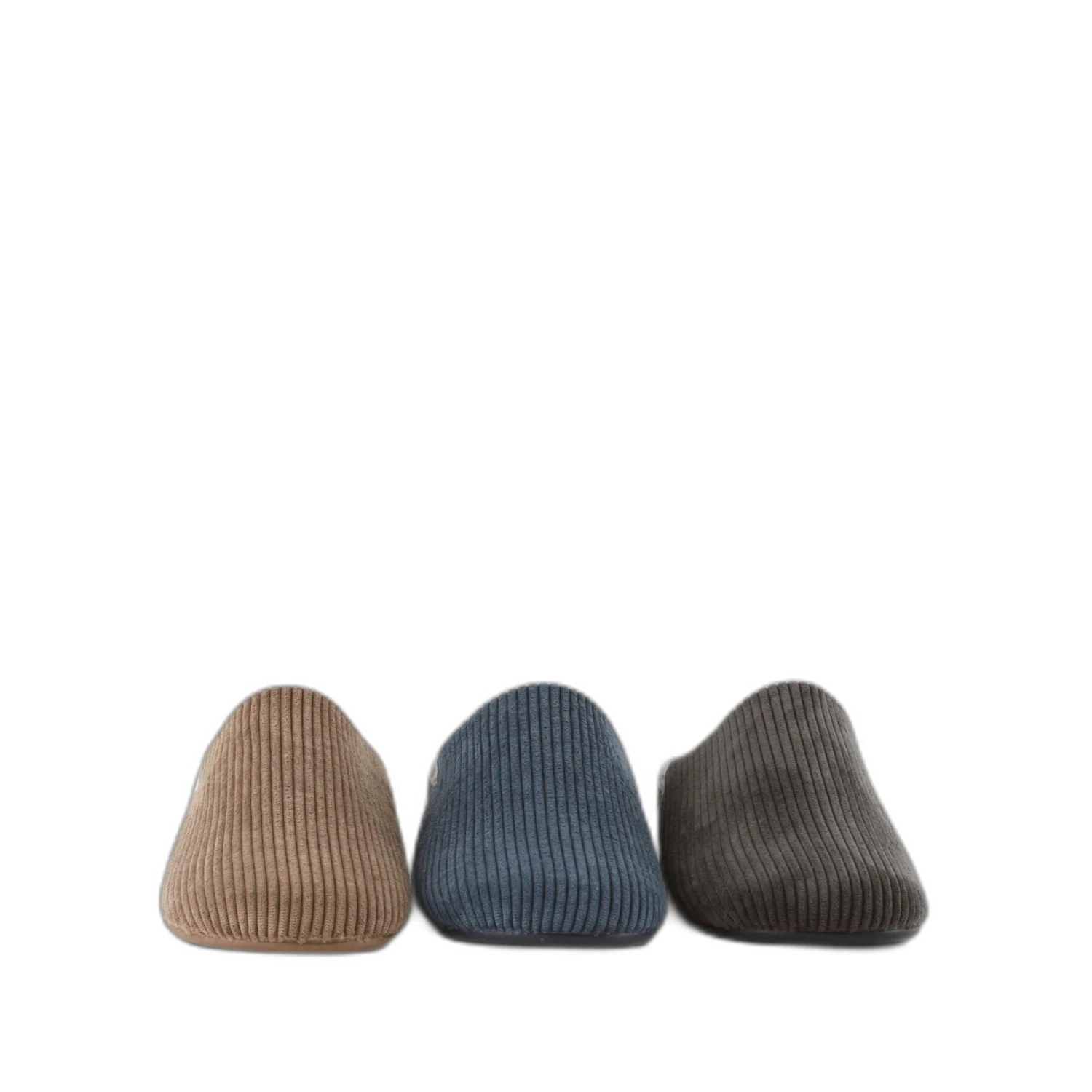 Nouvelles pantoufles ouvertes à l’arrière, fabriquées en Espagne en velours côtelé noir, marine ou taupe. Sa semelle intérieure est amovible, très confortable et chaude.