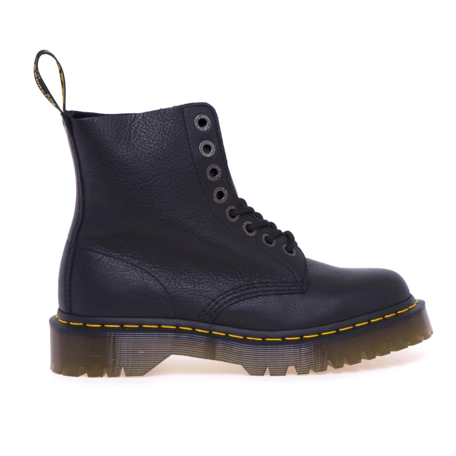 Anfibio Dr Martens 1460 BEX in pelle Pisa con suola in gomma. Rispetto alla versione tradizionale de modello 1460, la versione BEX presenta una suola leggermente più alta che è una sorta di compromesso tra il modello classico e quello con maxi platform. Il pellame Pisa risulta più morbido e confortevole rispetto allo smooth e presenta un caratteristico effetto grain. Fodera in pelle. Sottopiede in pelle. Suola in gomma.
