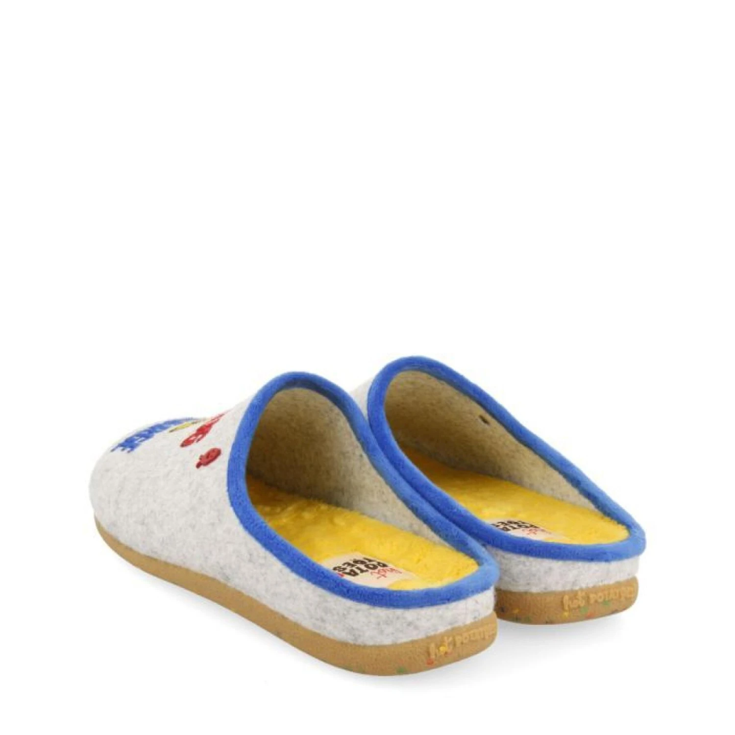 Cool et original ! Pantoufles grises de style mule arborant notre pomme de terre Unplug to Recharge. Fabriquées en feutre PET recyclé. Bordure et semelle intérieure en fourrure très douce. Semelle intérieure amovible en mousse de polyuréthane 100 % recyclée. La semelle est en liège naturel de couleur caramel avec des mouchetures colorées en caoutchouc EVA.