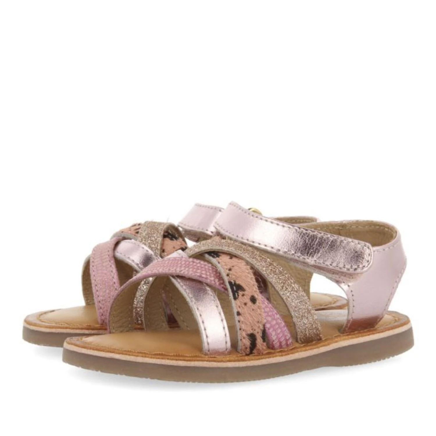 ¡Irresistible, quel que soit l’endroit où vous les regardez ! Sandales en cuir rose avec brides à imprimé animalier et paillettes. Bride de cheville réglable pour faciliter l’ajustement et l’autonomie. Doublure en cuir et semelle intérieure en cuir rembourrée de latex, ce qui garantit un meilleur amortissement. Semelle intérieure en cuir tanné selon un processus plus durable, conformément aux normes du Leather Working Group. Semelle très souple. Toutes les tendances printemps-été POUR LES ENFANTS dans la nouvelle collection Gioseppo Kids.