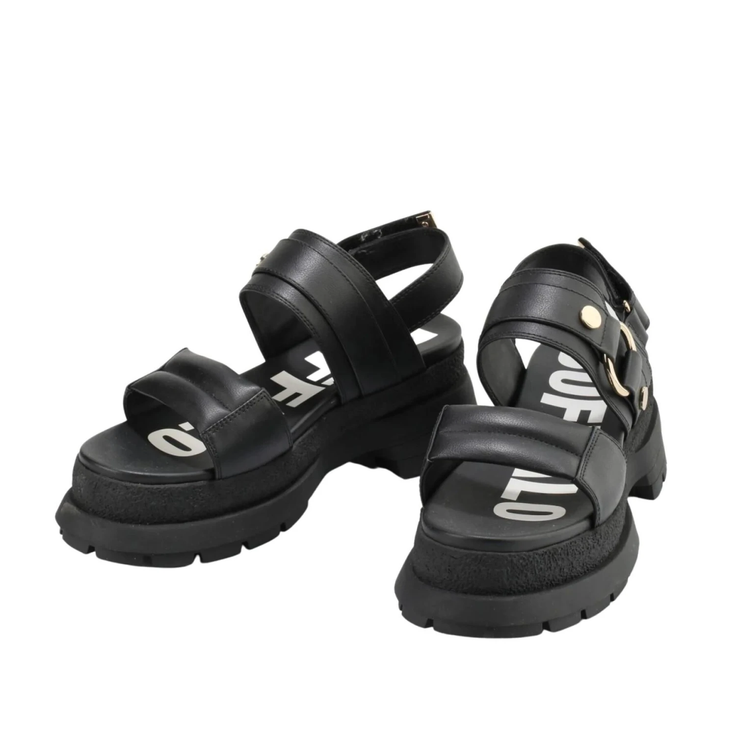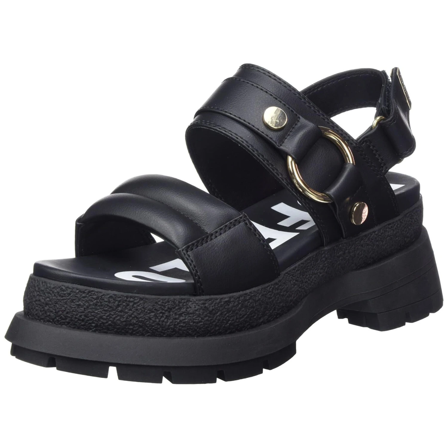 Avec les sandales à plateforme Rude Ring, tout est permis. Vous vous ferez remarquer à chaque fois. Leur lanière rembourrée ainsi que les détails dorés et l’anneau se chargent d’apporter un côté rock idéal pour composer des tenues grunge. Vous pouvez être sûre de vous faire remarquer !Caractéristiques :simili cuir nappa noirconception végane et à base d’eaulanière rembourrée et détails doréssemelle profilée à plateformemousse à mémoire de forme