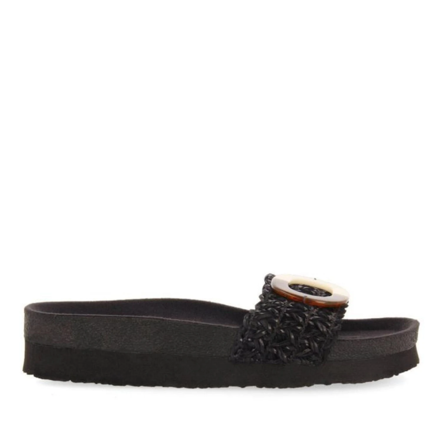 Qui a dit qu’on ne pouvait pas être élégante à la plage ou au bord de la piscine ? Découvrez ces sandales à semelle compensée avec raphia noir, décorations et semelles compensées. Semelles anatomiques souples pour plus de confort et semelles légères en EVA.