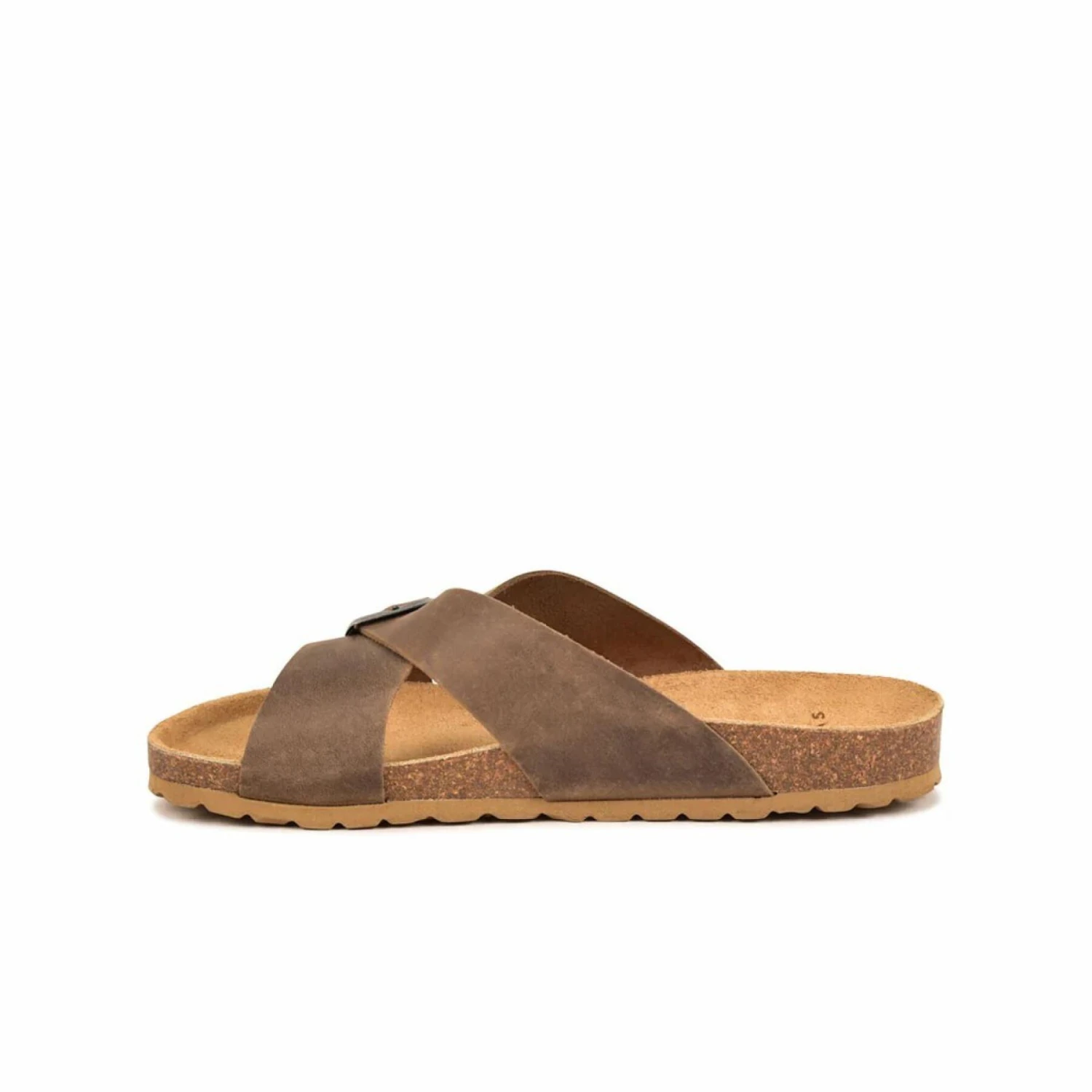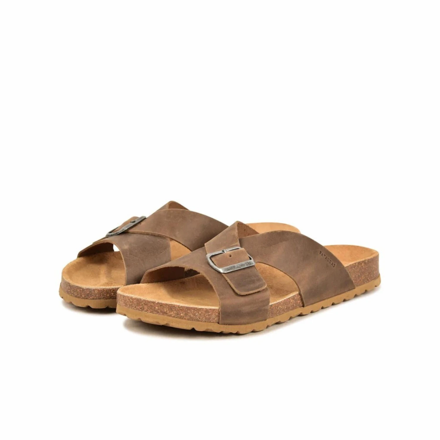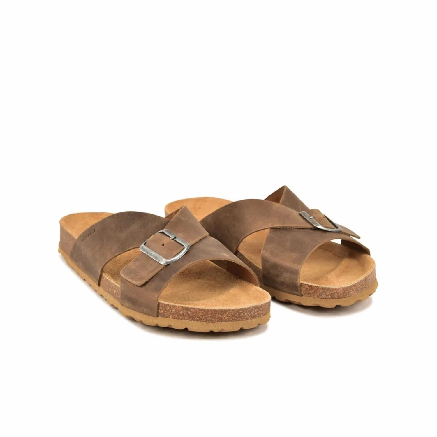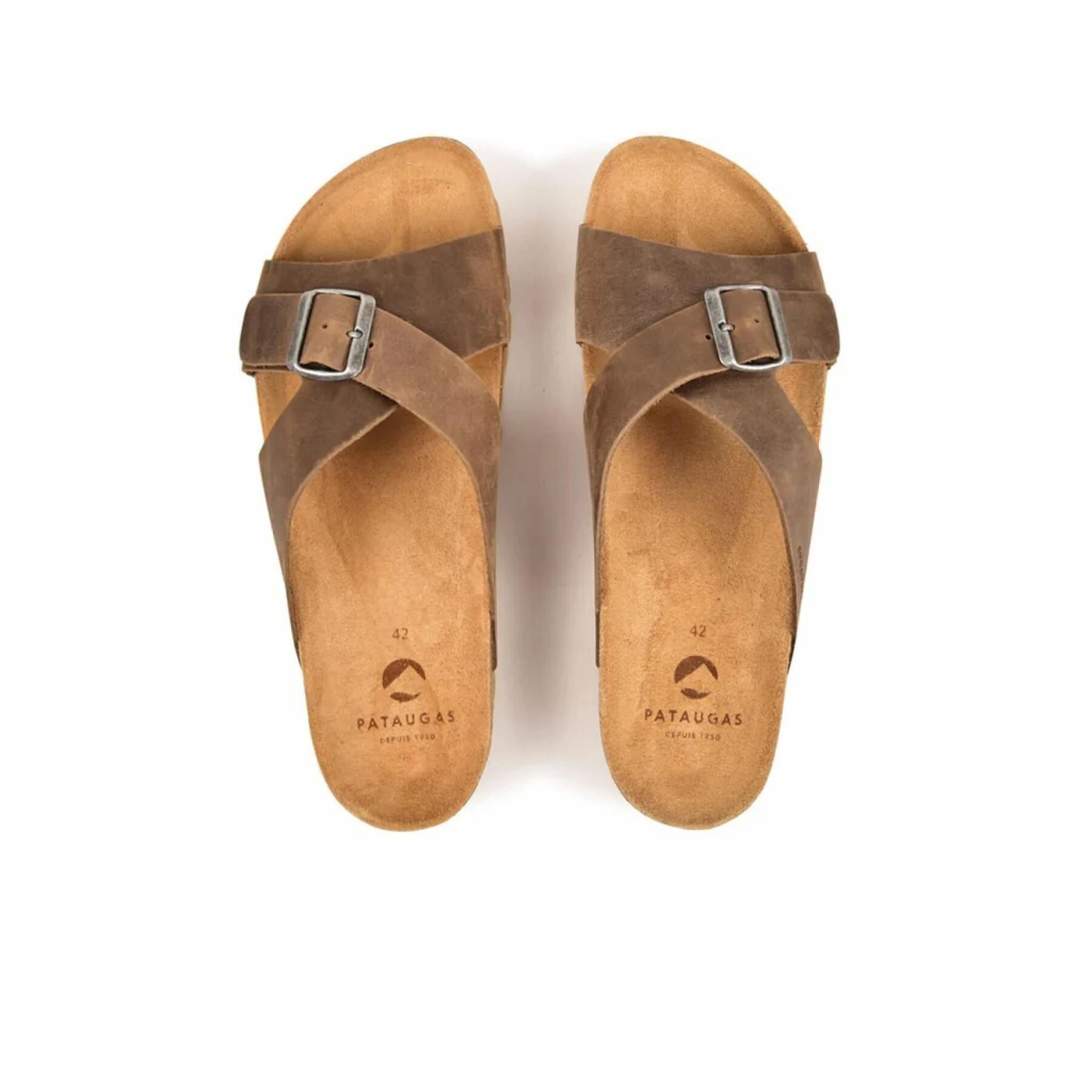 Nouveauté de la saison LUDO, la mule classique et intemporelle pour homme. Cette version en cuir marron sera idéale pour tous les jours, facile à enfiler et à porter au quotidien. Ses brides latérales permettent un bon maintien et sa petite boucle assure un réglage facile pour tous les pieds. Enfin, sa semelle épaisse et légèrement crantée la rend très confortable. Sa voûte plantaire moulée apporte du soutien et amorti les chocs ; doublée en suède, elle régule la transpiration. Il s’agit d’un cuir gras huilé, qui apporte du caractère et se patinera avec le temps. Les marques d’usure font partie de la patine du cuir, et ajoute de l’authenticité à ce produit.